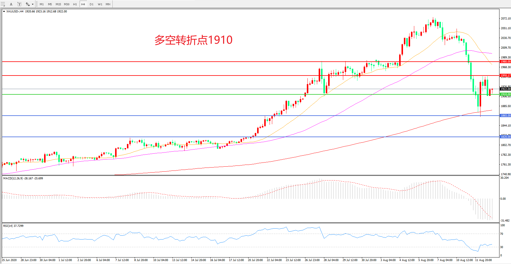 现货黄金XAU/USD    4小时图
