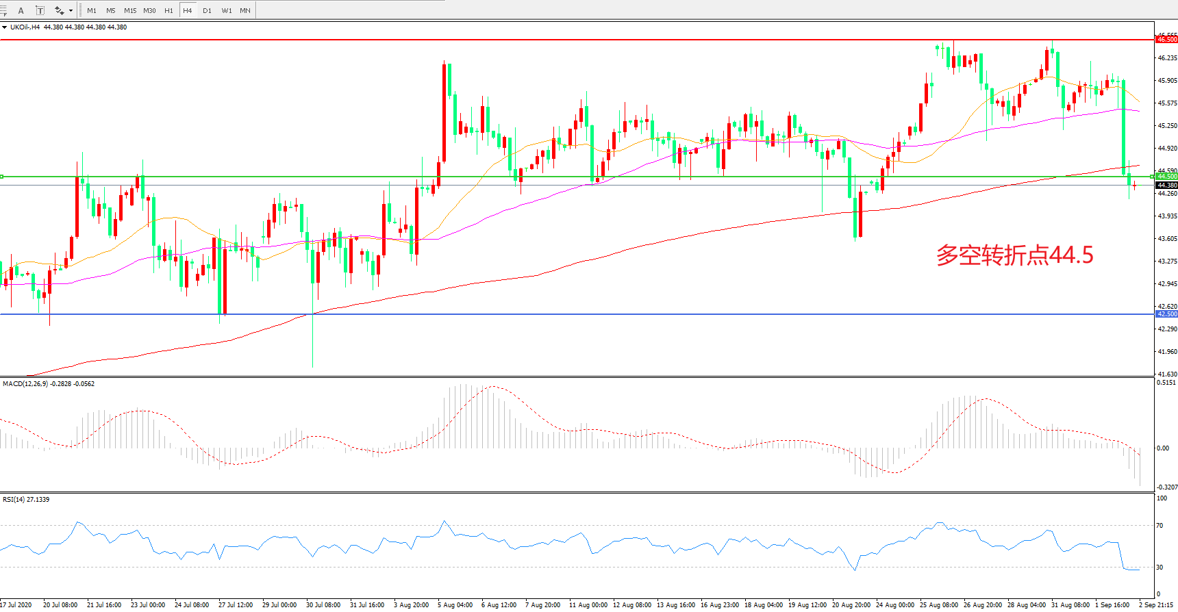 多空转折点:44.50