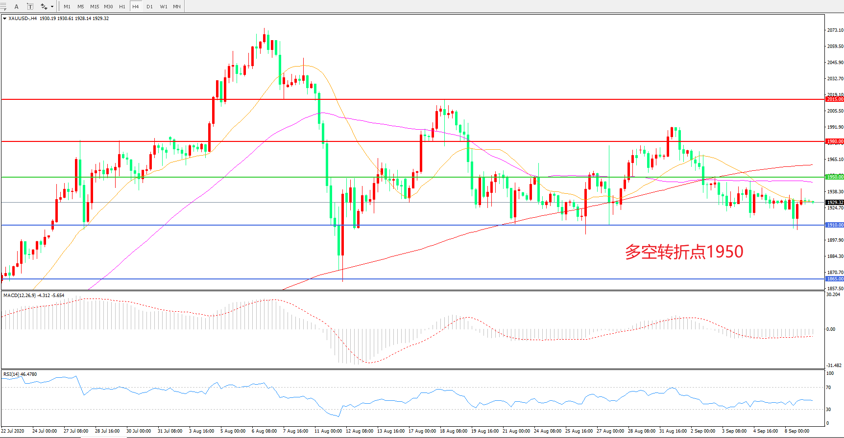 现货黄金XAU/USD    4小时图