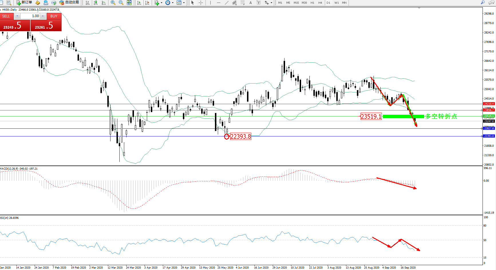 恒指HK50 ——日K线图显示: