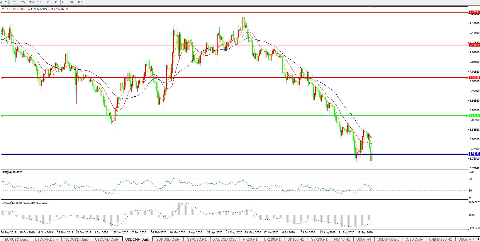 美元兑人民币USDCNH    日线图:
