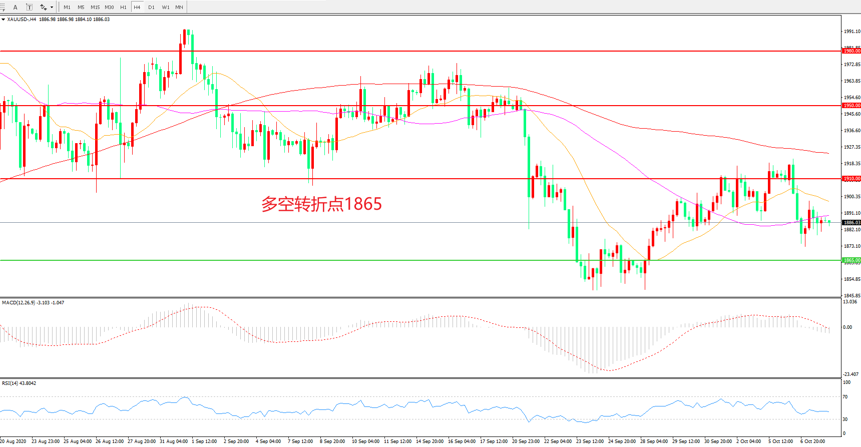多空转折点:1865.00