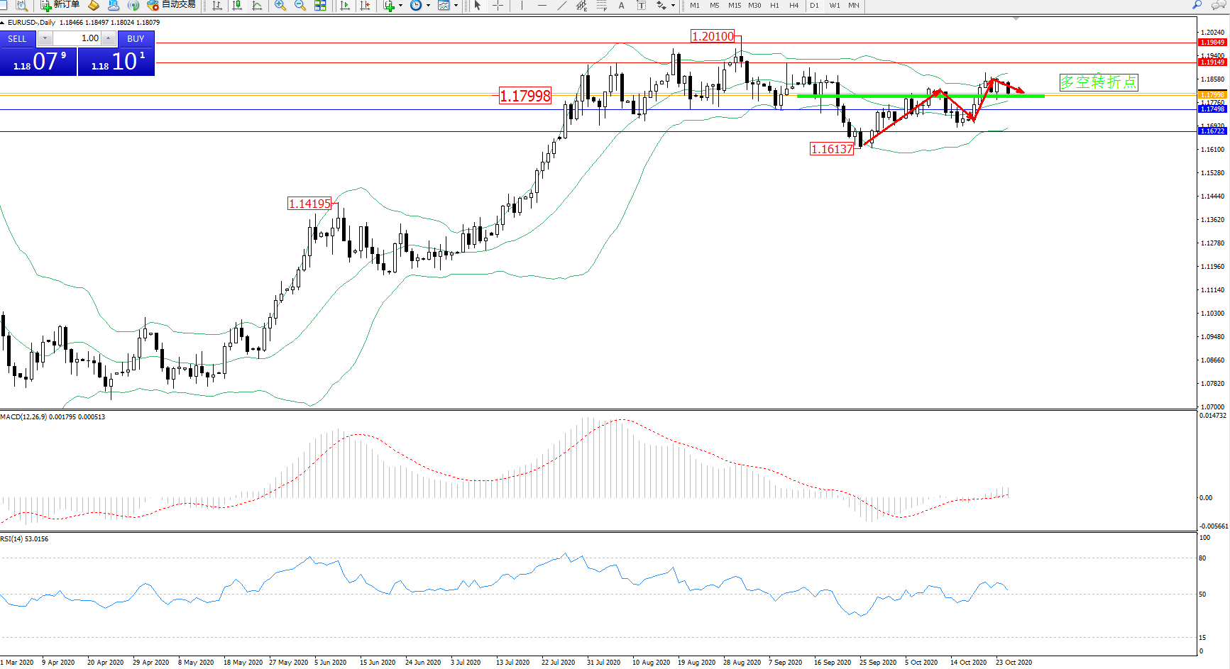 交易策略:1.17998上方看涨,目标1.19149、1.19849