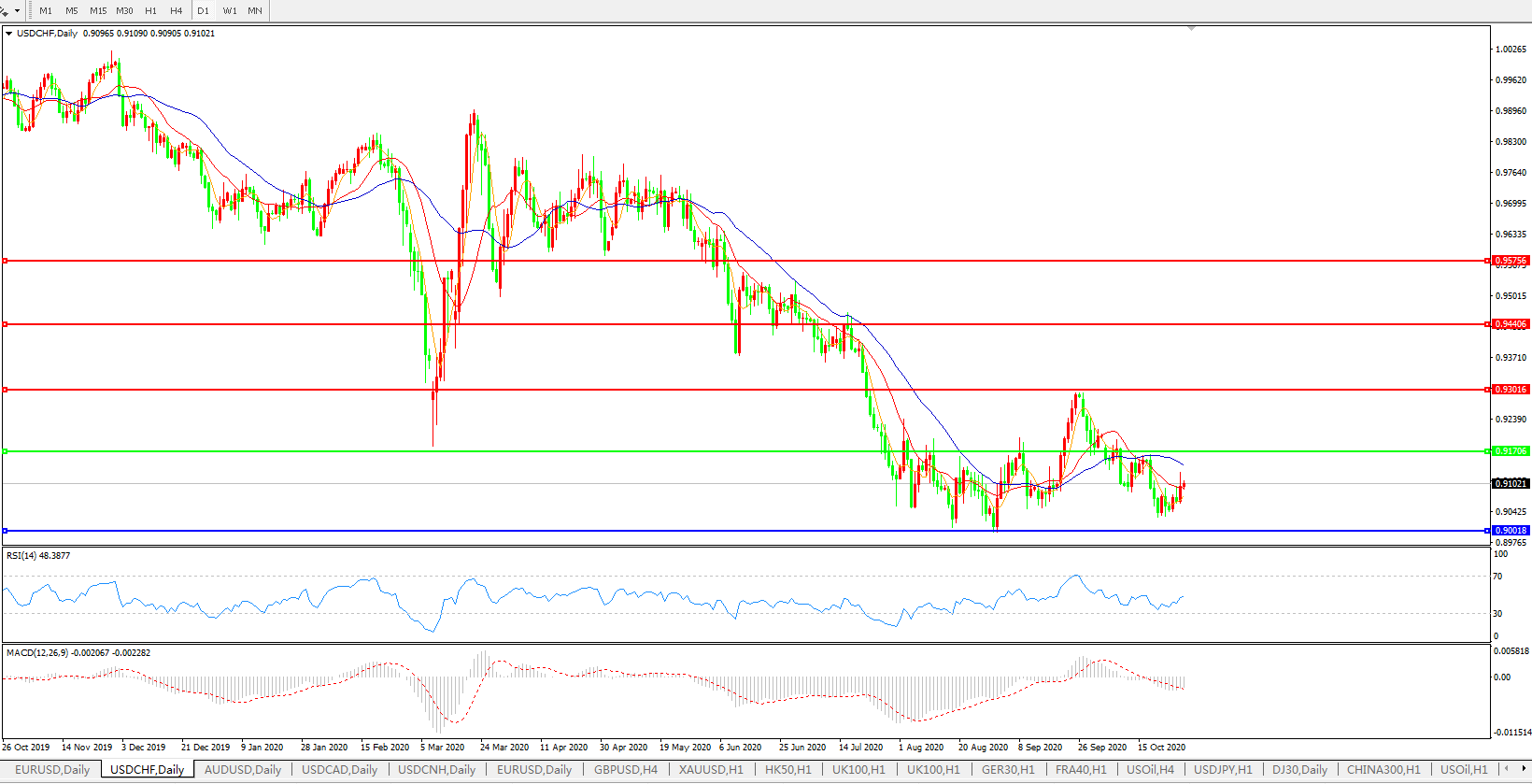美元兑瑞郎USDCHF 日线图: