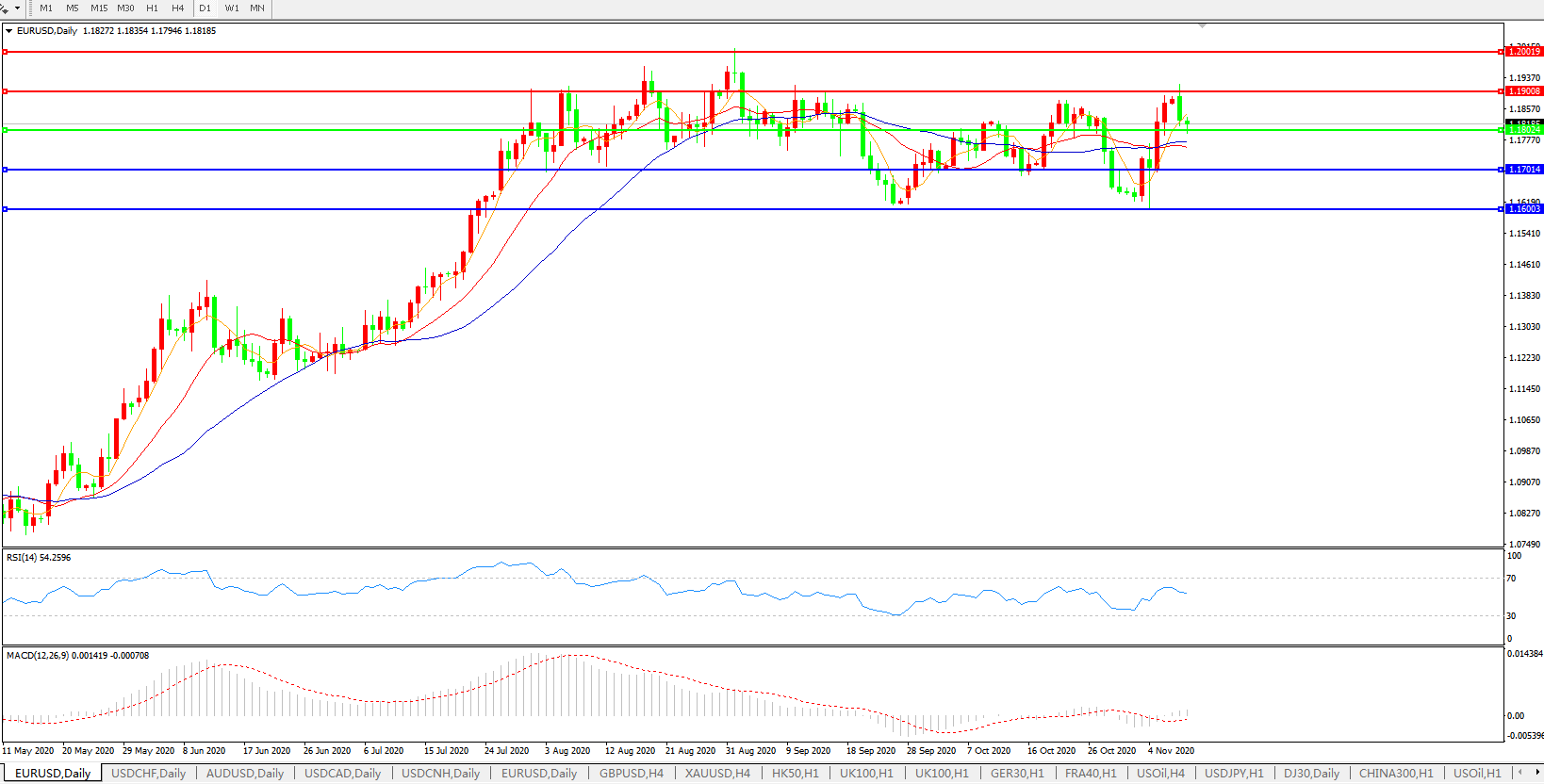 欧元兑美元EURUSD   日线图: