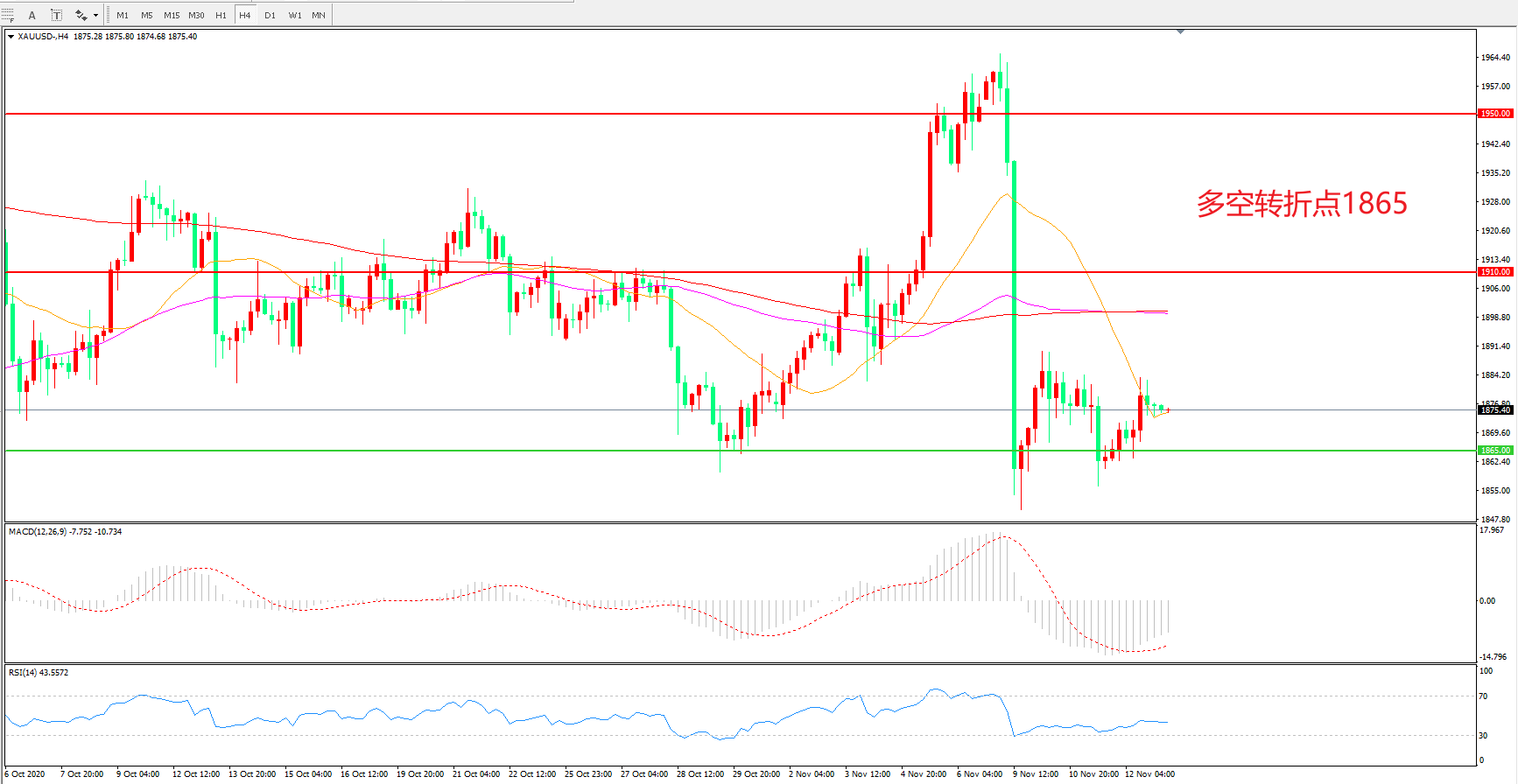 多空转折点:1865.00