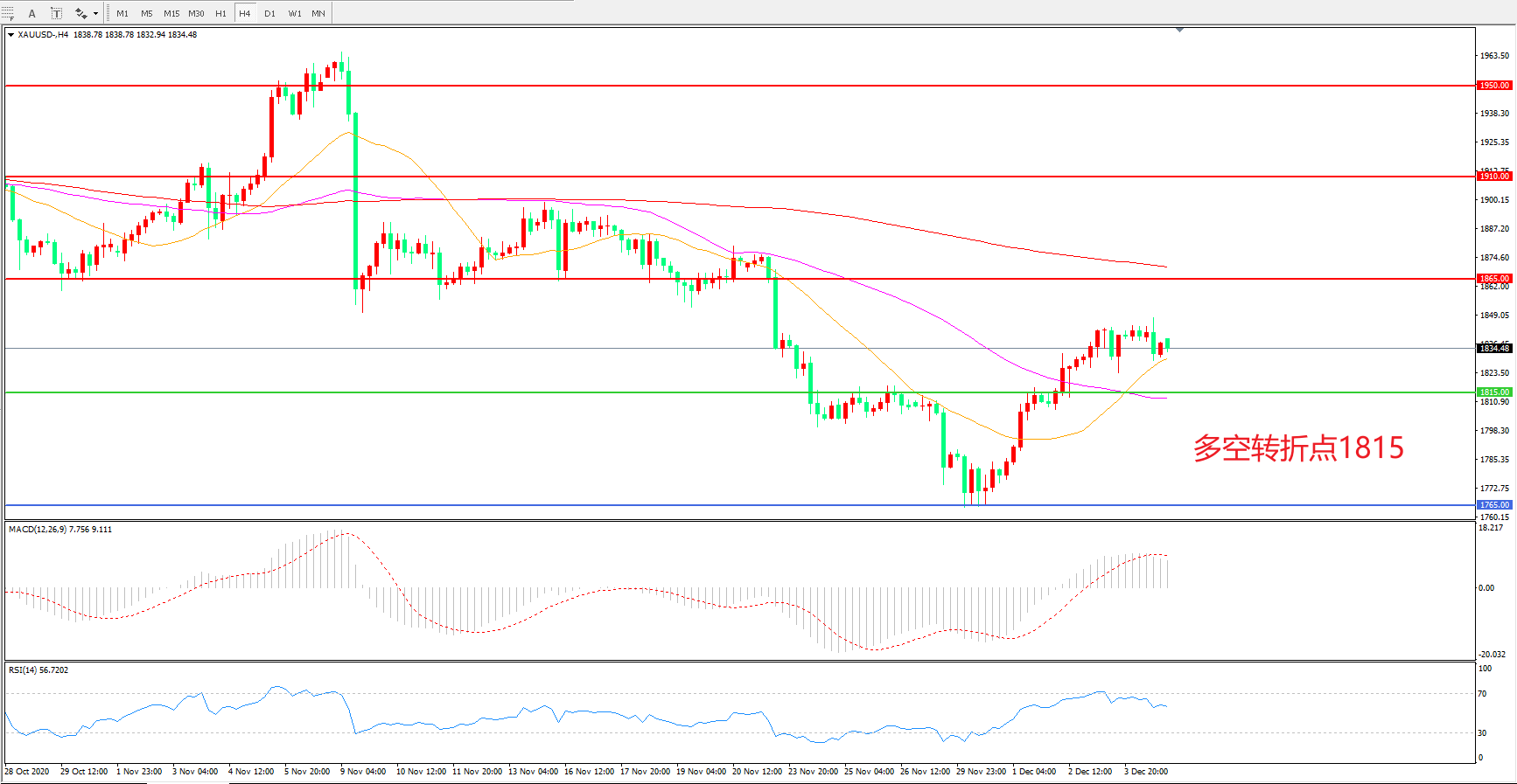 多空转折点:1815.00