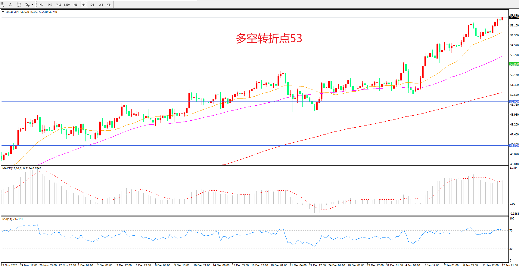 周二(1月12日),在高盛等多家投行唱多油价背景下,原油价格继续向上攻城略地,布伦特原油震荡上行,收报56.75美元/桶。现在美国已经放弃了所谓的通胀目标,而当选拜登也表示将有数万亿美元的经济刺激计划,在这种情况下,风险资产短期依然会受到市场追捧,原油市场依然有向上的动力。