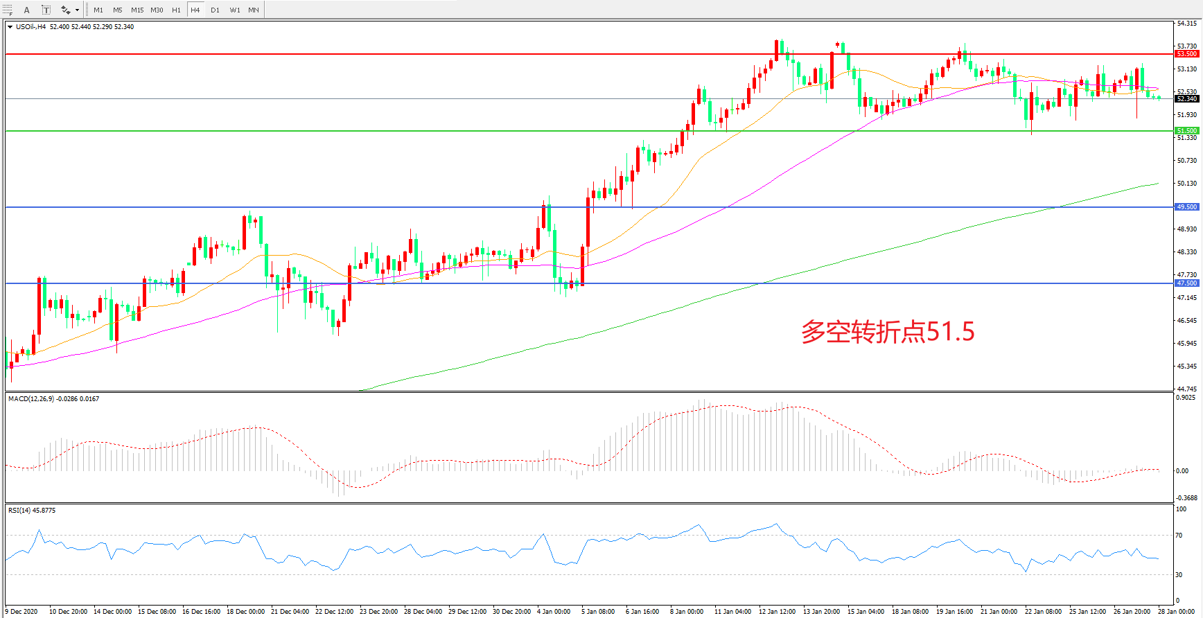 交易策略:在51.50之上看涨,目标53.50 57.00