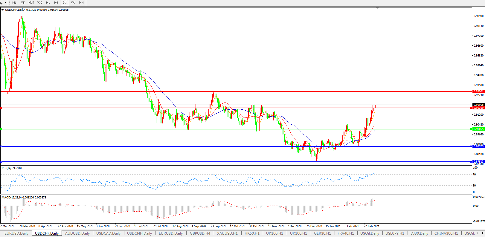 美元兑瑞郎USDCHF    日线图: