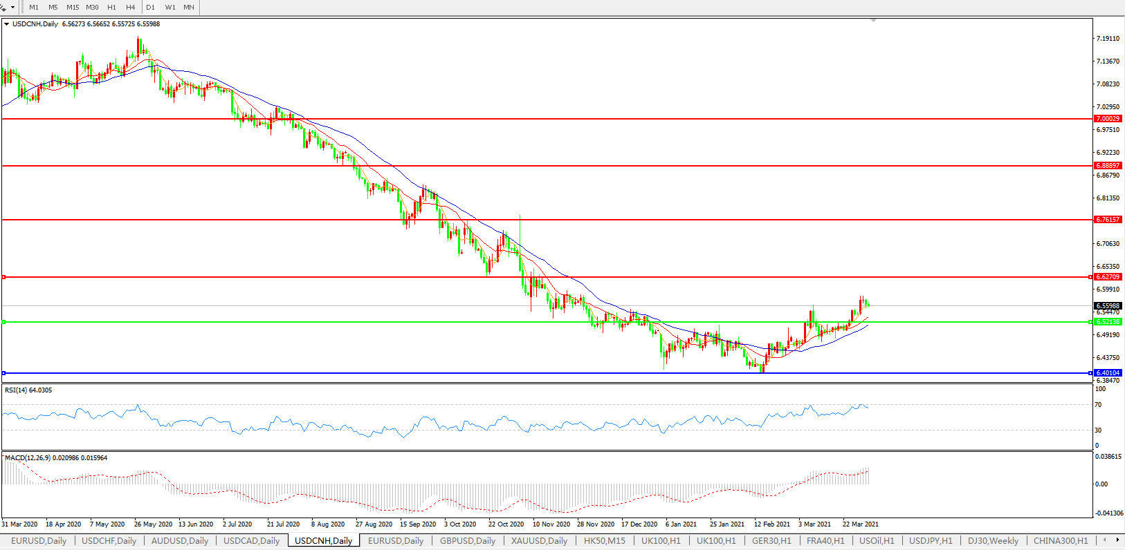 美元兑人民币USDCNH    日线图: