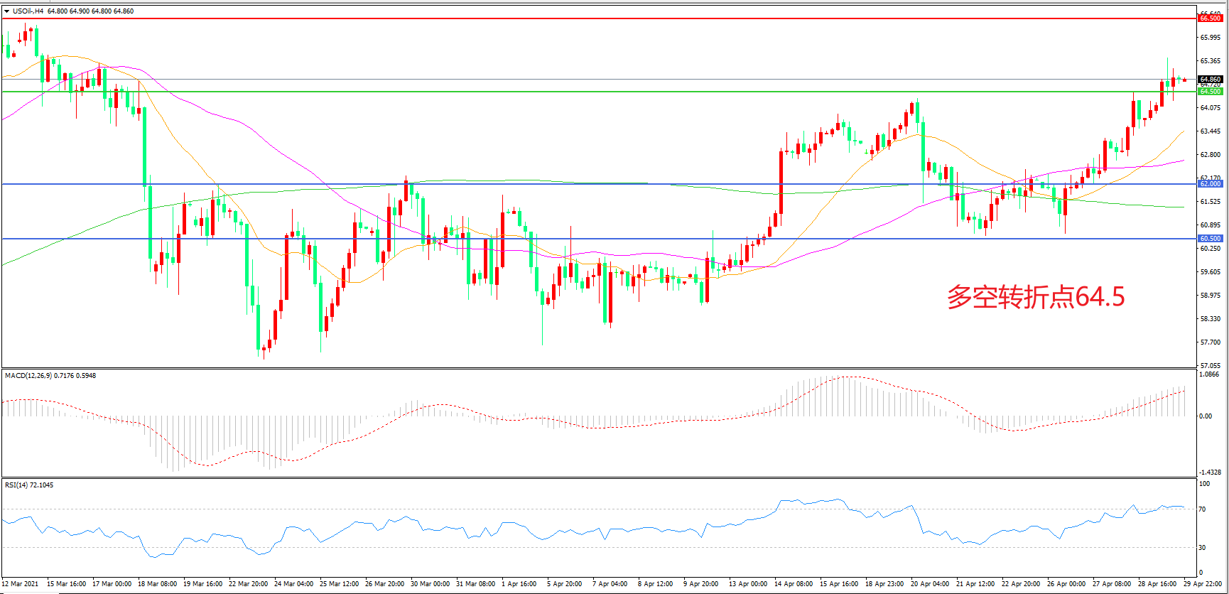 交易策略:在64.5.00之上看涨,目标66.50    69.00