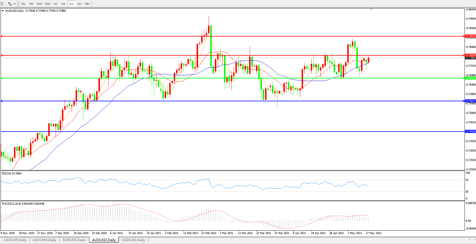 交易策略:0.7680上方看涨,目标0.7800、0.7900