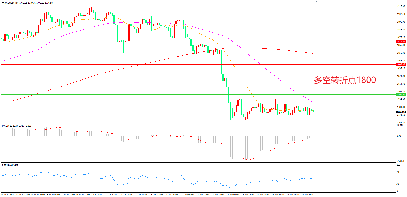 多空转折点:1800.00