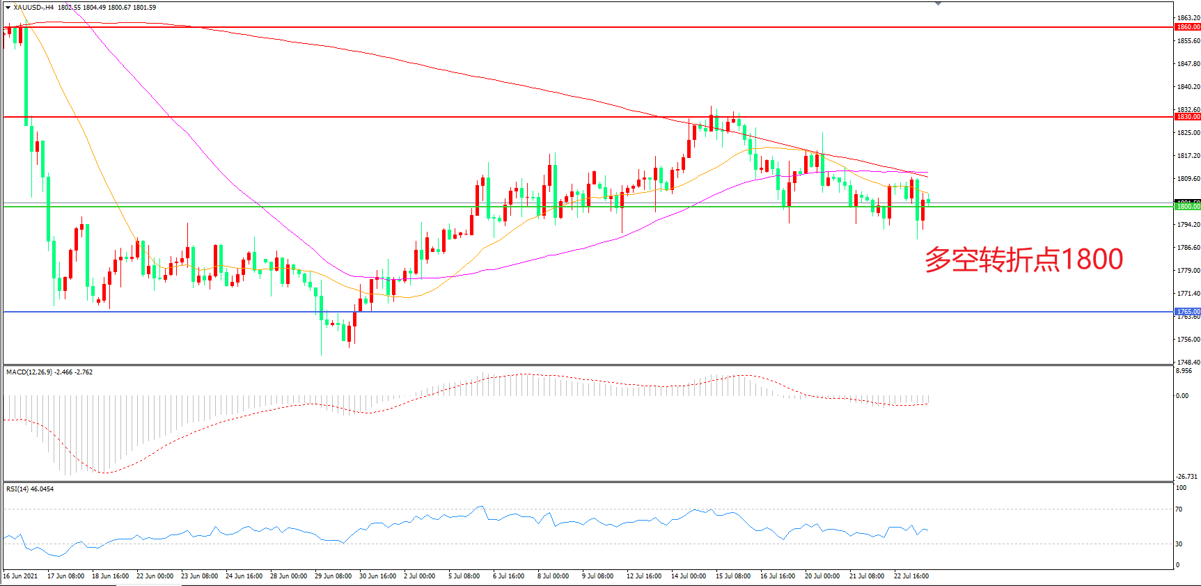 备选策略:在1800.00之下看跌,目标1760.00        1730.00