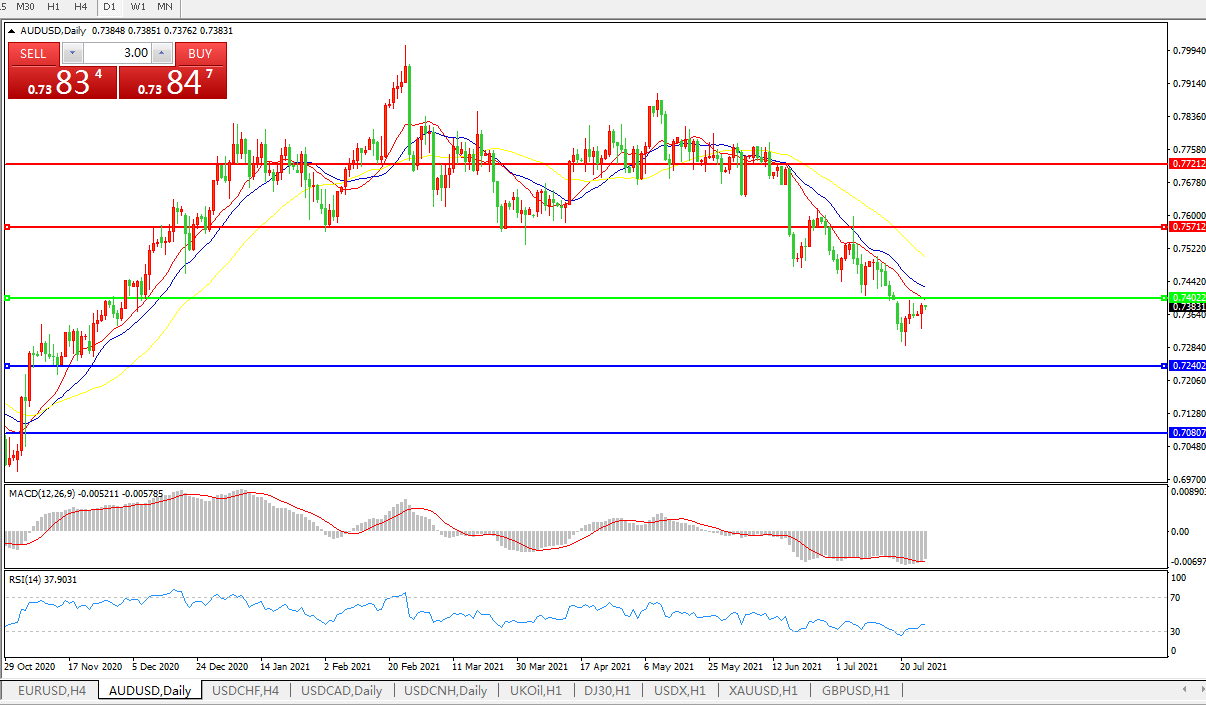 交易策略:0.7400下方看跌,目标0.7240、0.7080