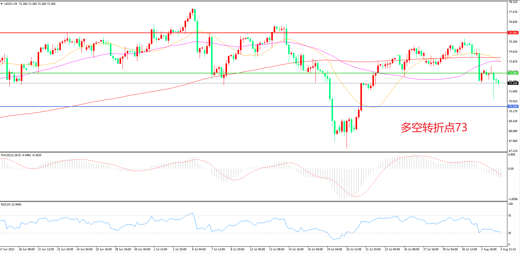 交易策略: 在73.00之下看跌,目标70.50               66.50
