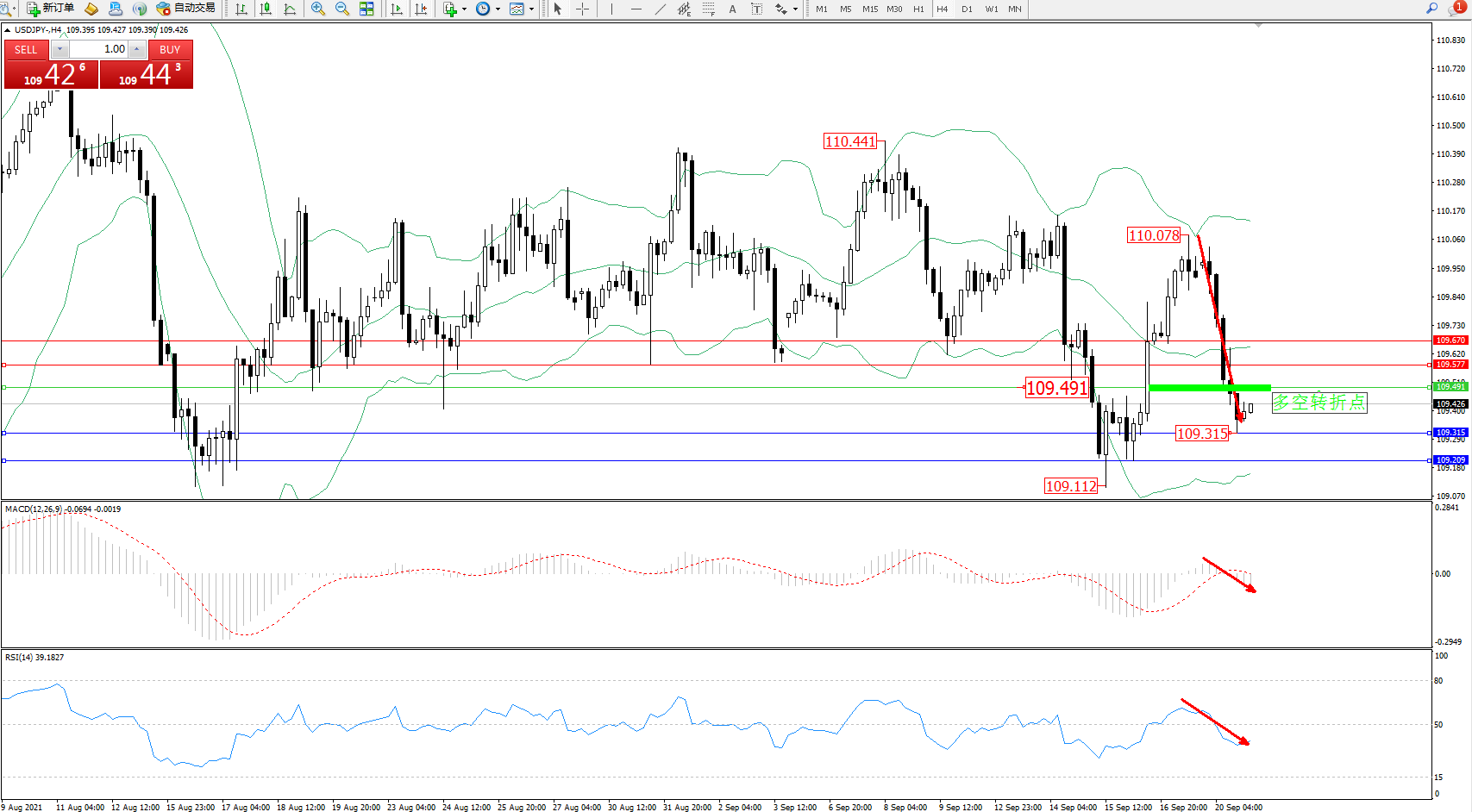 交易策略:109.491下方看跌,目标109.315、109.209