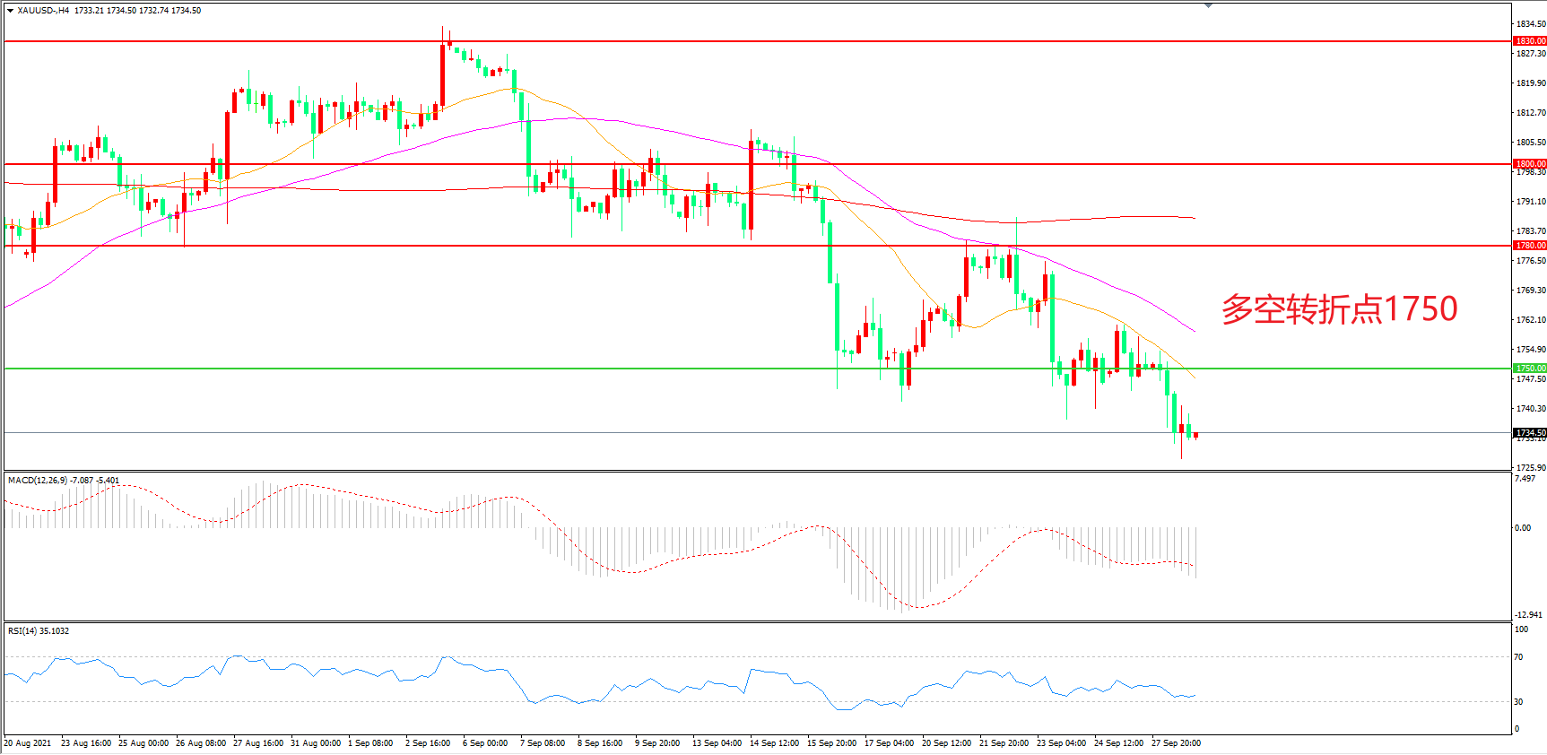 交易策略:在1750.00之下看跌,目标1720.00 1700.00