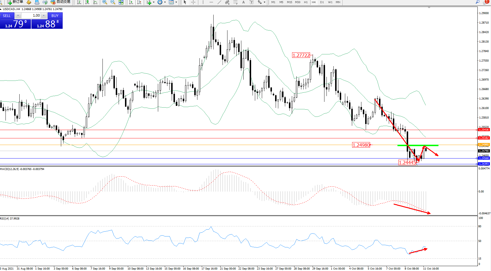 交易策略:1.24980下方看跌,目标1.24568、1.24393