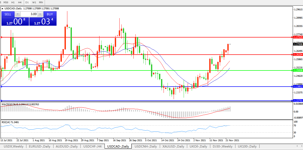 疫情及油价持续助力,美元兑加元持续上攻