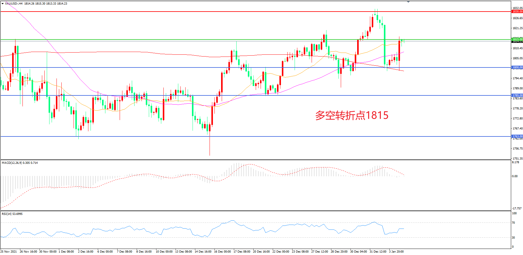 多空转折点:1815.00