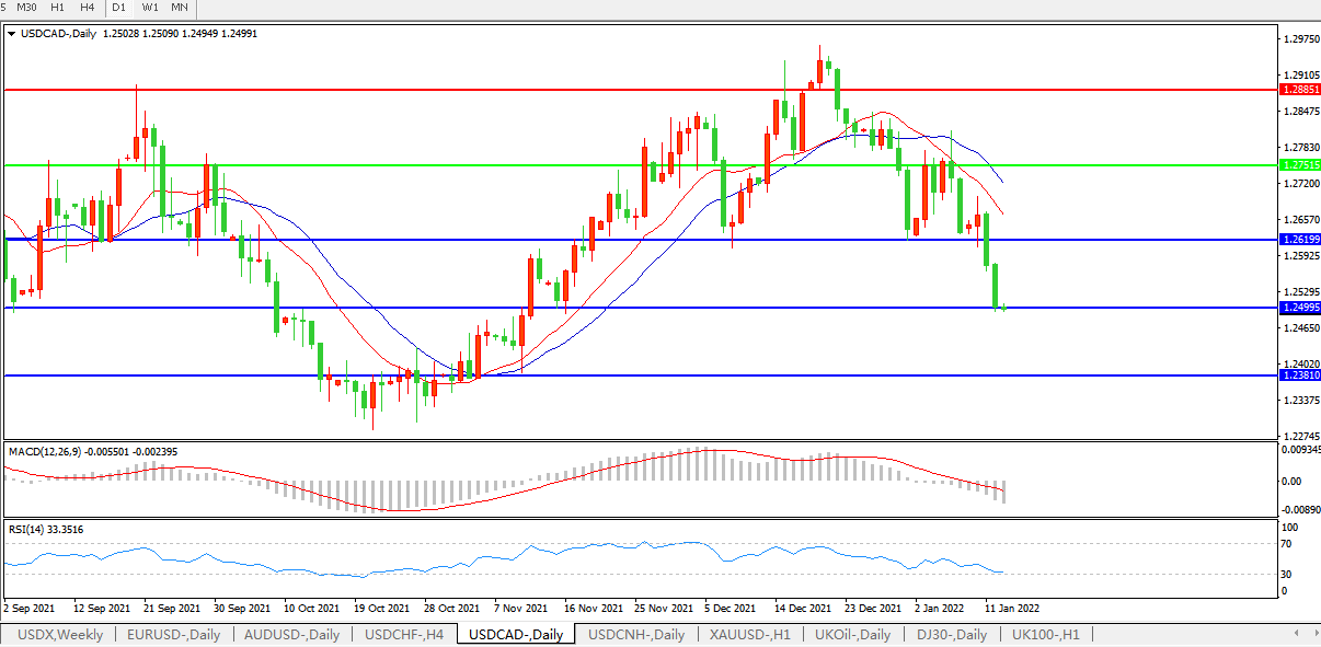 美元兑加元USDCAD 日线图: