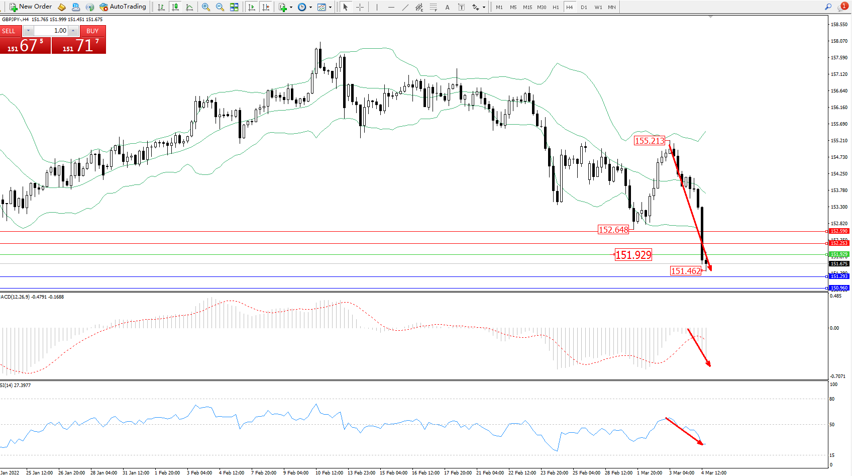 交易策略:151.929下方看跌,目标151.293、150.960