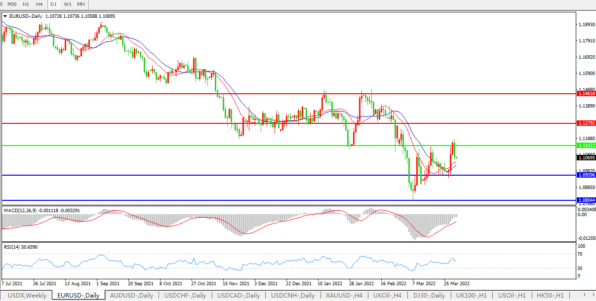 欧元兑美元下跌0.82%,至1.1065,稍早触及1.1184美元的3月1日以来最高,欧洲不断上升的通胀加剧了对加息的预期。欧洲央行首席经济学家连恩周四表示,欧元区通胀愈发有可能稳定在2%左右,但如果乌克兰战争导致前景恶化,央行应该准备好改变路线。