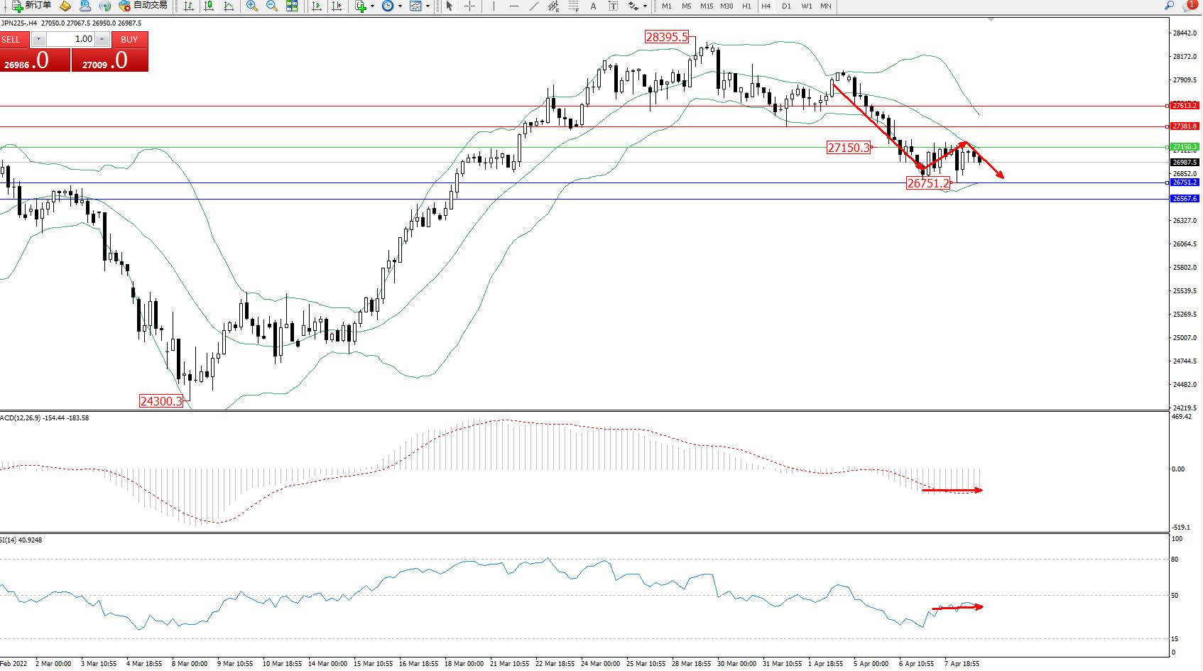 交易策略:27150下方看跌,目标26751、26567