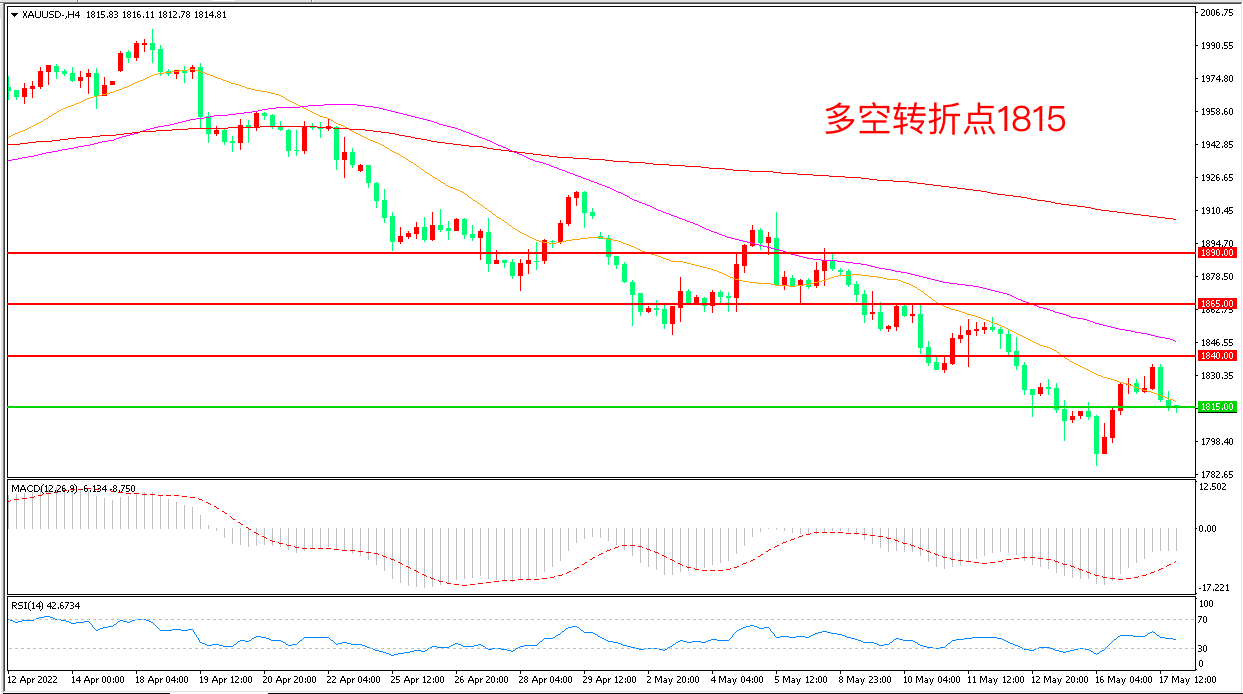 交易策略:在1815.00之下看跌,目标1790.00 1765.00