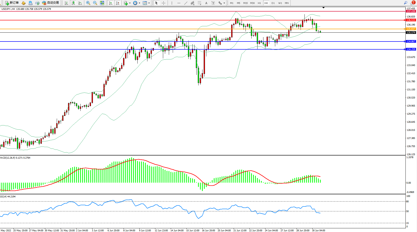 交易策略:135.837下方看跌,目标134.867、134.259