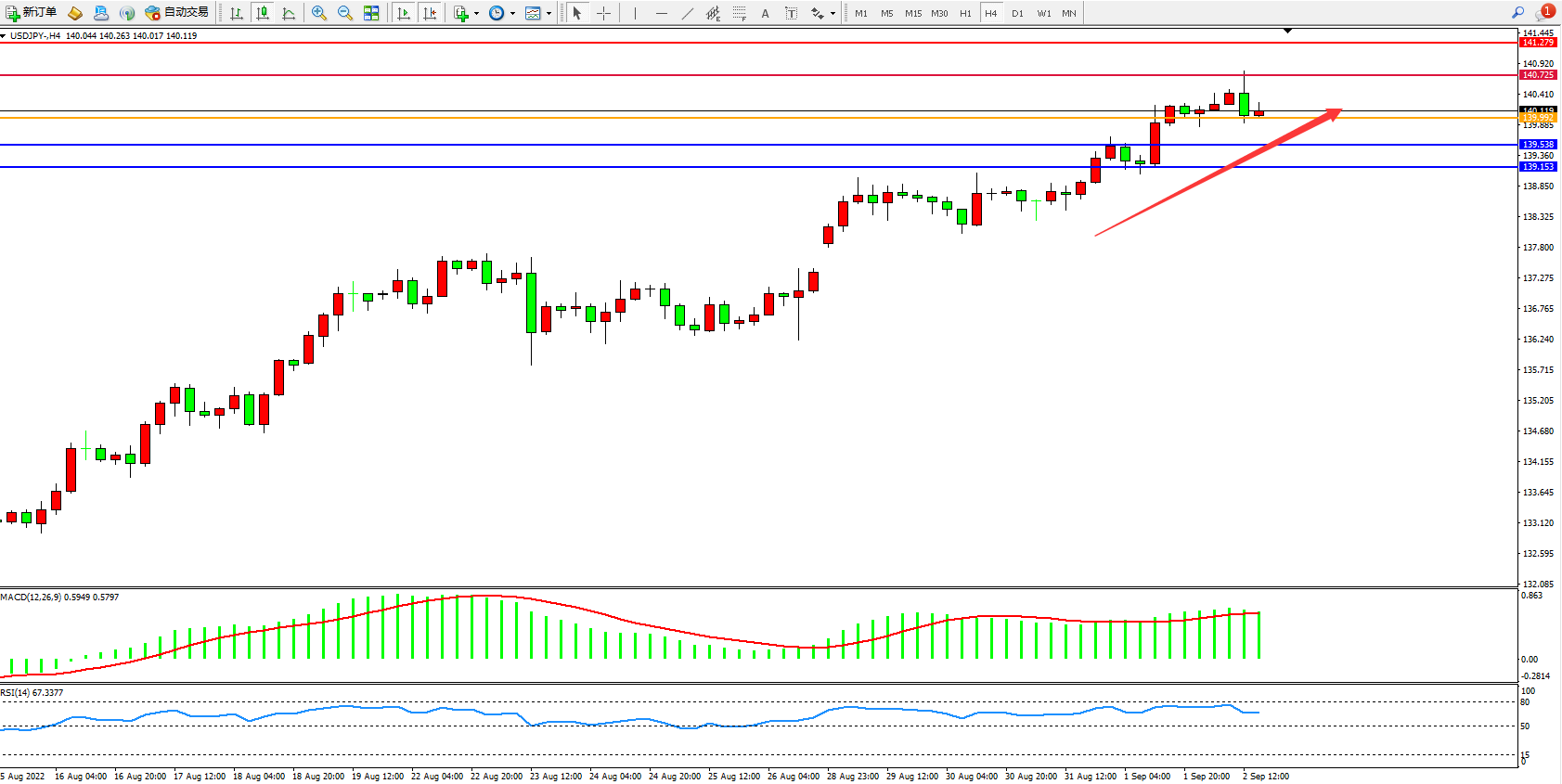 交易策略:139.992上方看涨,目标140.725、141.279