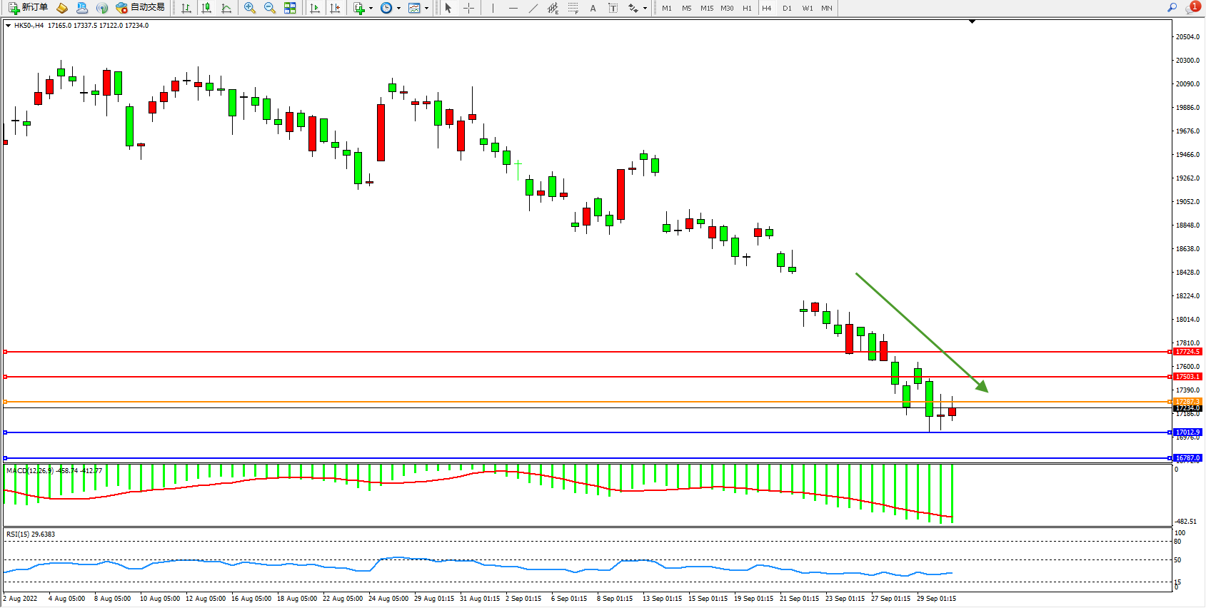 恒指HK50 4小时图