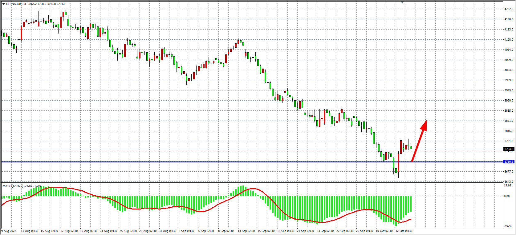 1小时图看,沪深300小幅反弹后在昨日高点3785附近出现受阻,同时MACD在零轴之下开始小幅缩量,有望延续进一步反弹,目前支撑主要集中于3710附近,日内在该位之上可继续看反弹,上方目标看3830-3900。