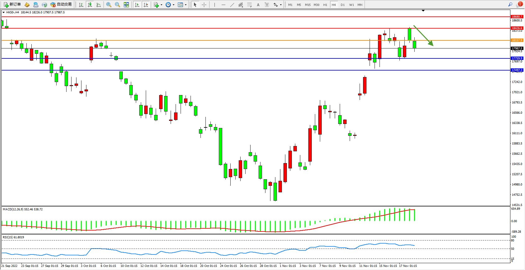 恒指HK50 4小时图