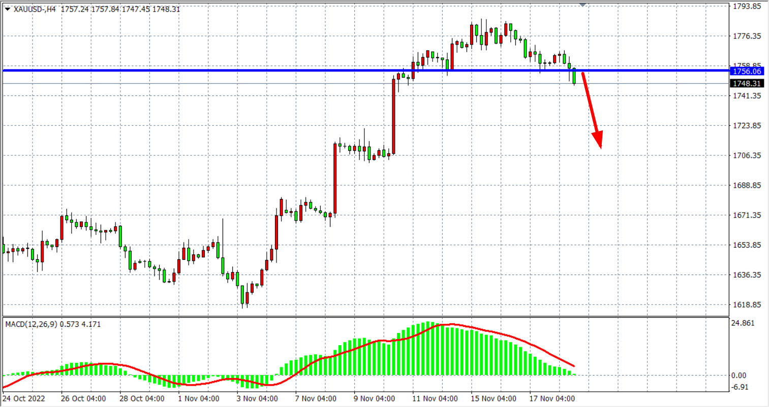 备选策略:在1756.00 之下看跌,目标1740.00         1730.00