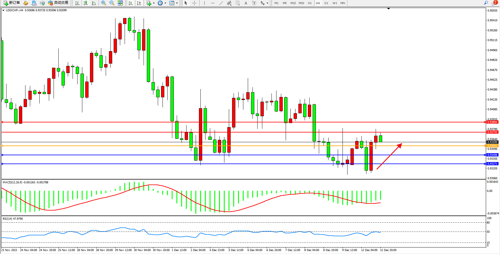 美元瑞郎USDCHF——4小时K线图显示: