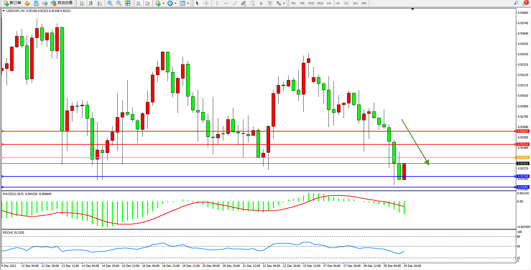 美元瑞郎USDCHF——4小时K线图显示: