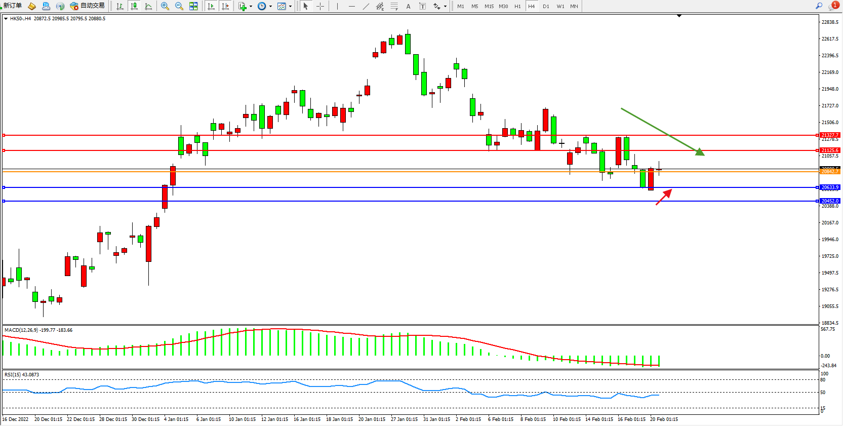 恒指HK50 4小时图