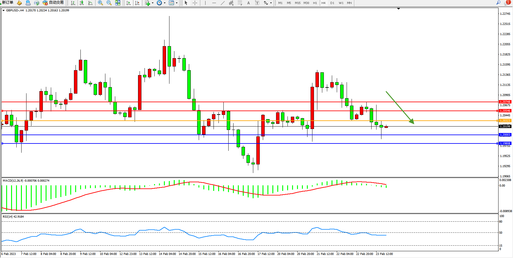 交易策略:1.20323下方看跌,目标1.20003、1.19808