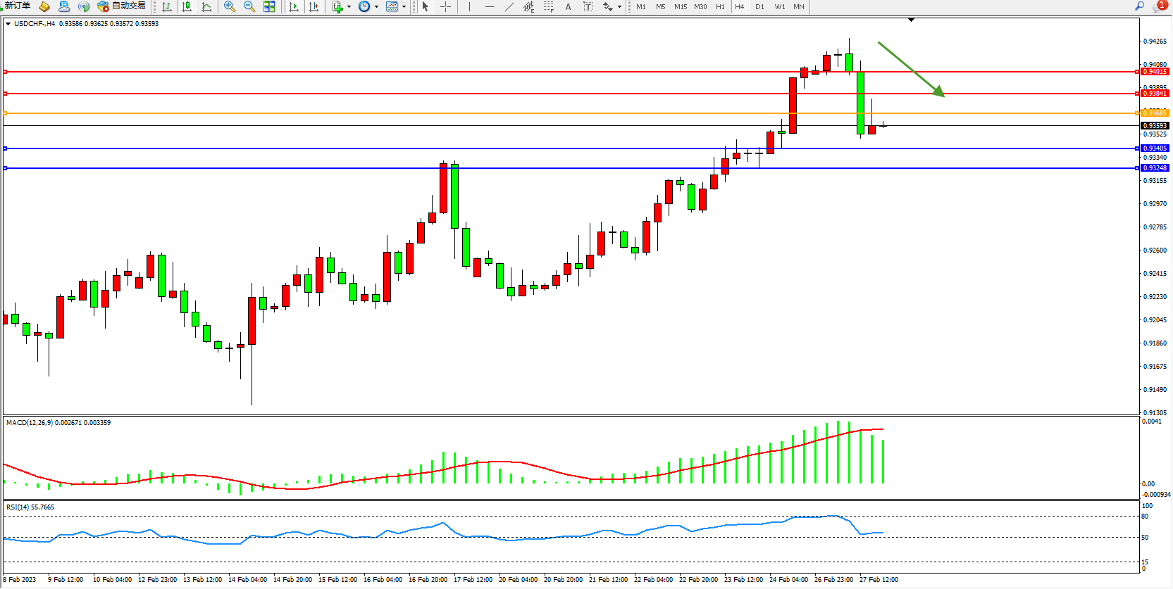 美元瑞郎USDCHF——4小时K线图显示: