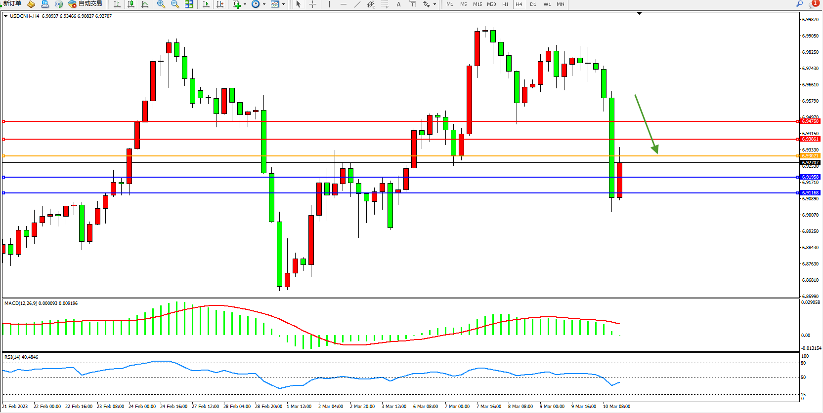 交易策略:6.93021下方看跌,目标6.91958  6.91168