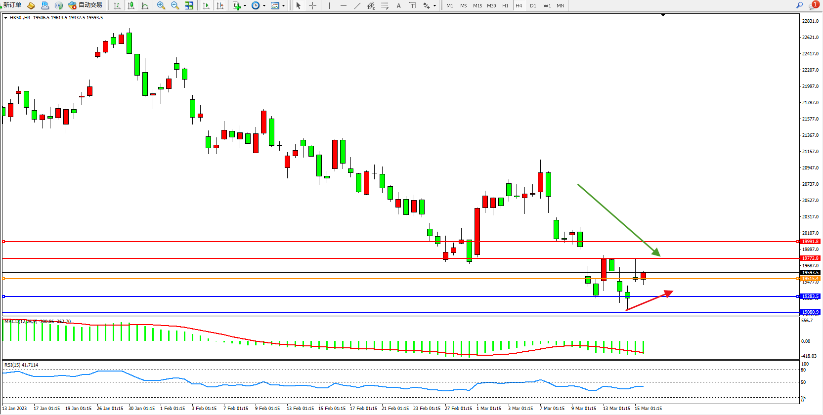 恒指HK50 4小时图