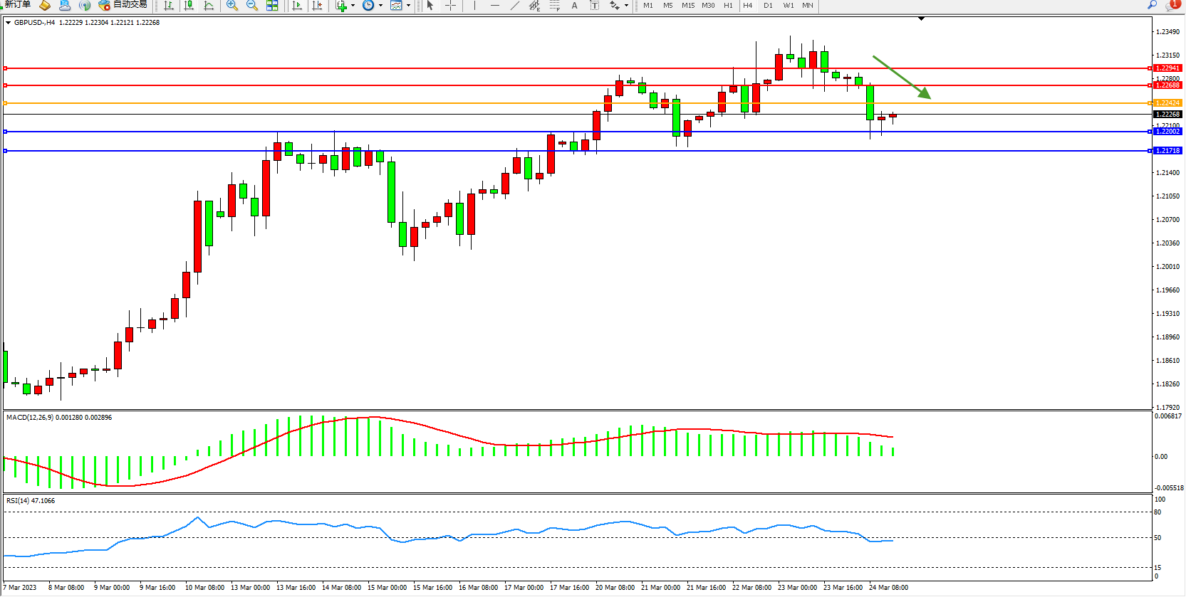 备选策略:1.22424上方看涨,目标1.22688  1.22941