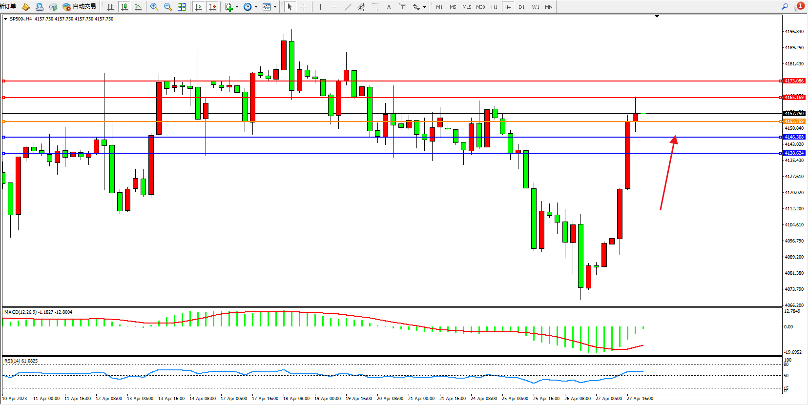 标普SP500——4小时K线图显示: