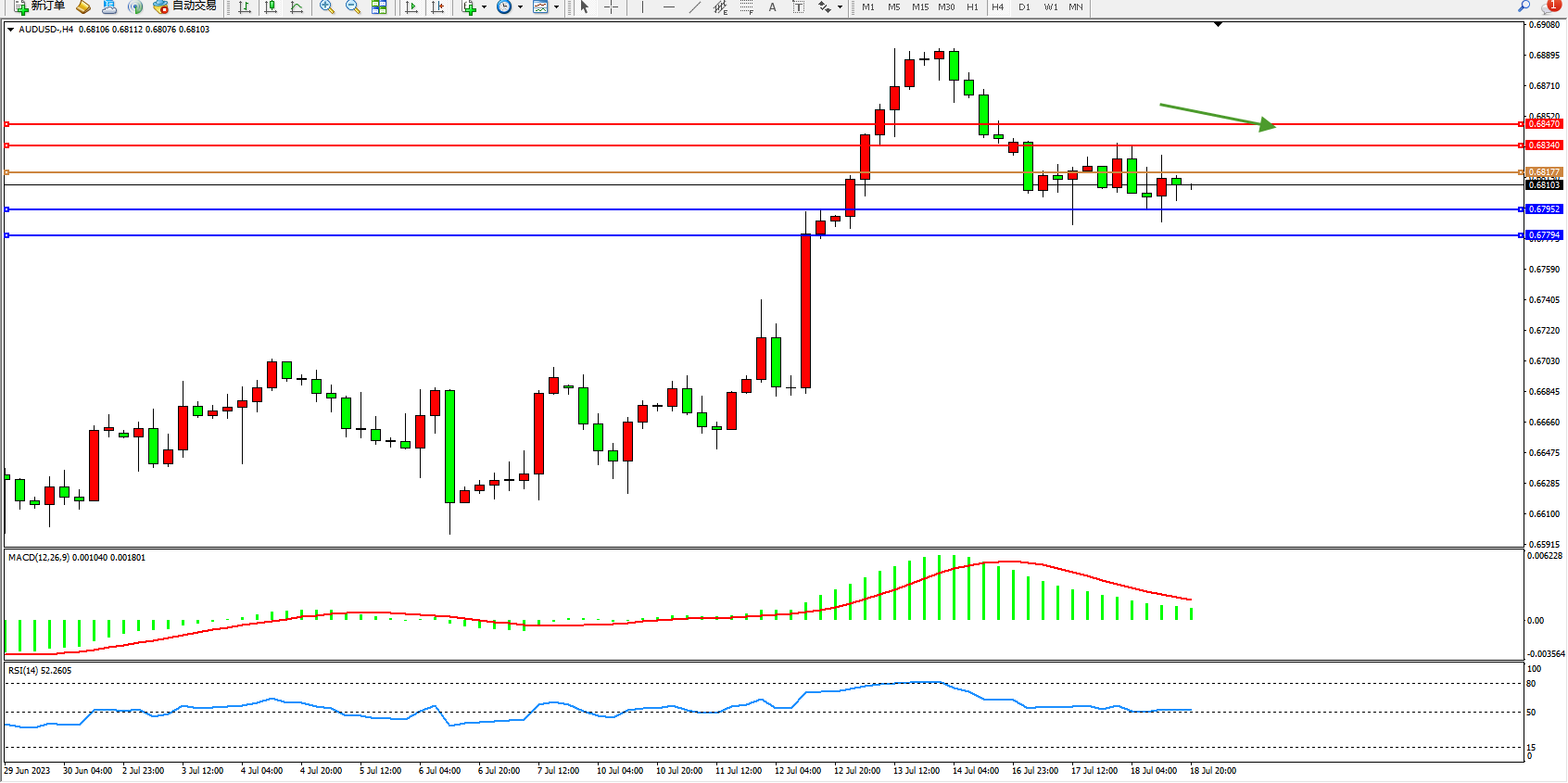 交易策略:0.68177下方看跌,目标0.67952 0.67794