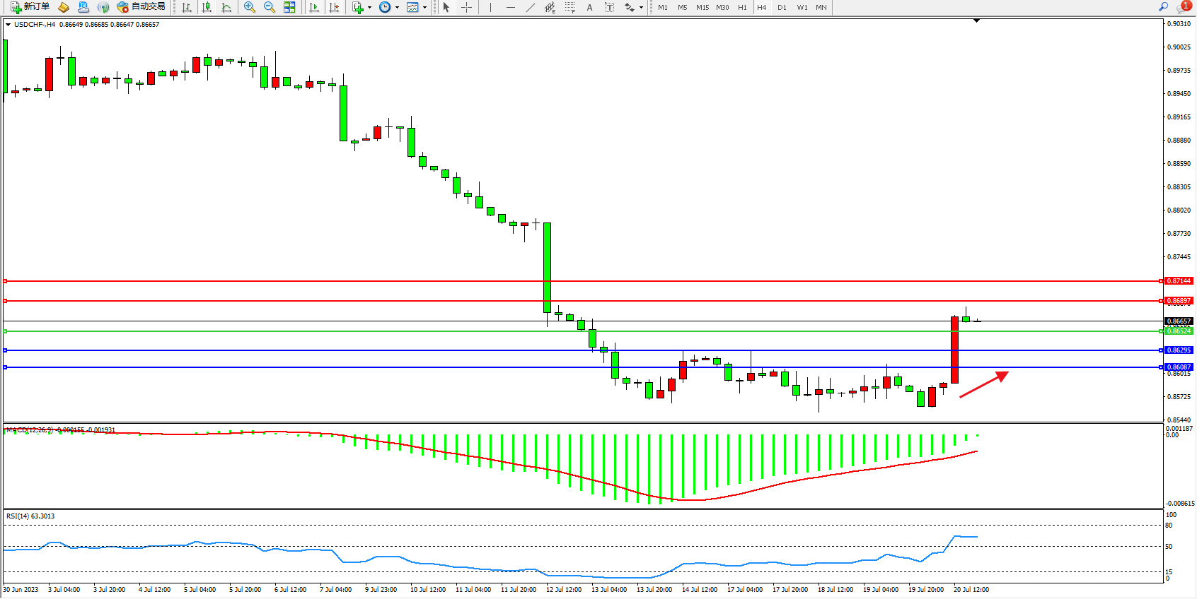 USDCHF:多头拉升