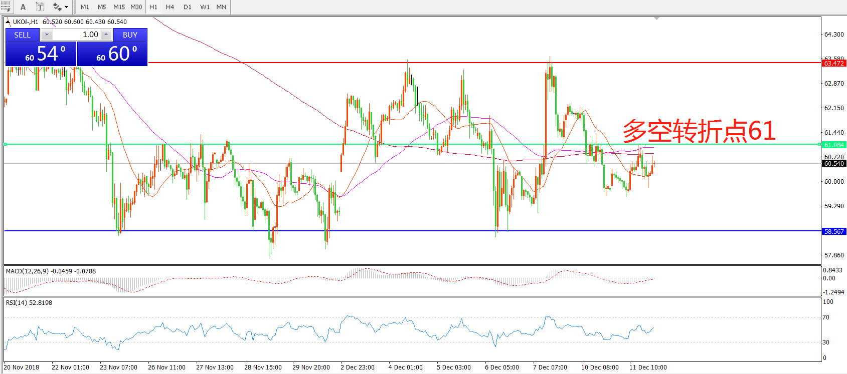 多空转折点:61.00