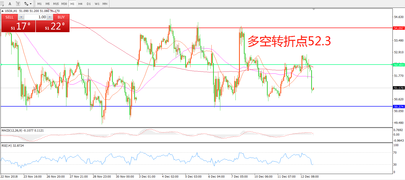 交易策略:在52.3之下看跌,目标51.50   50.00